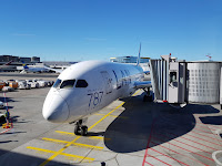 The flight to Frankfurt started on time. Unfortunately we had gotten the two middle seats in the middle row. A nice flight attendant accompanied us on the flight.